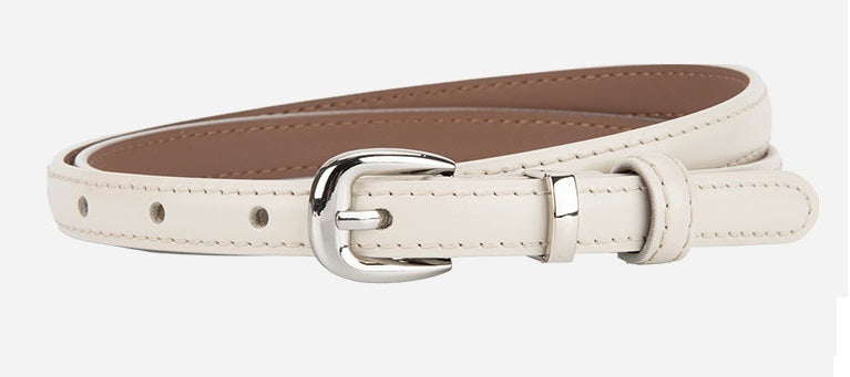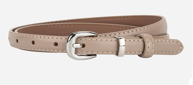 Smalt bælte med stikninger og ent enkelt sølv farvet spænde
