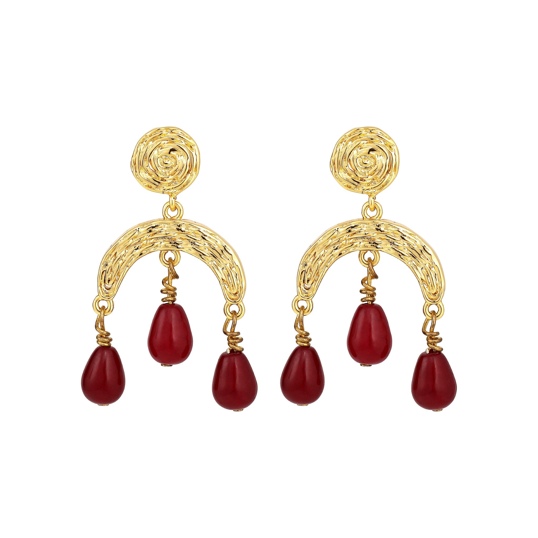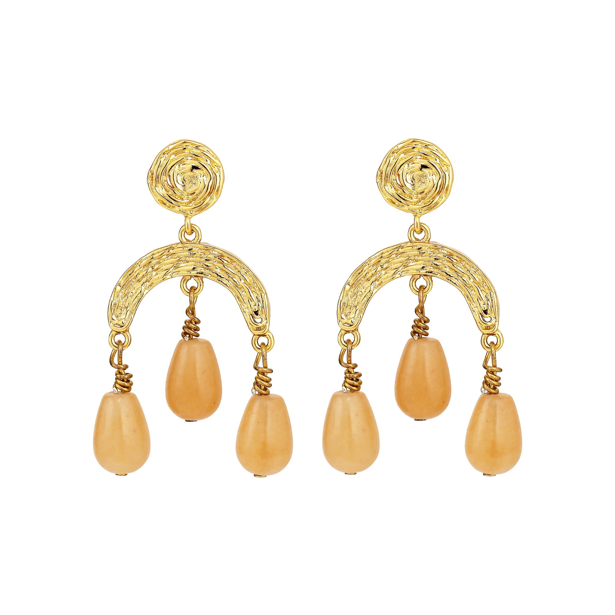 Skulpturel ørering i forgyld messing med natursten